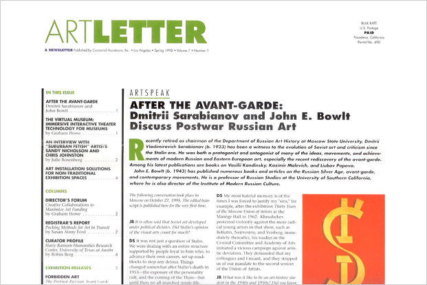 DESCRIPTION Newsletter highlighting current art exhibitions along with interviews and articles by leading figures in the art field.